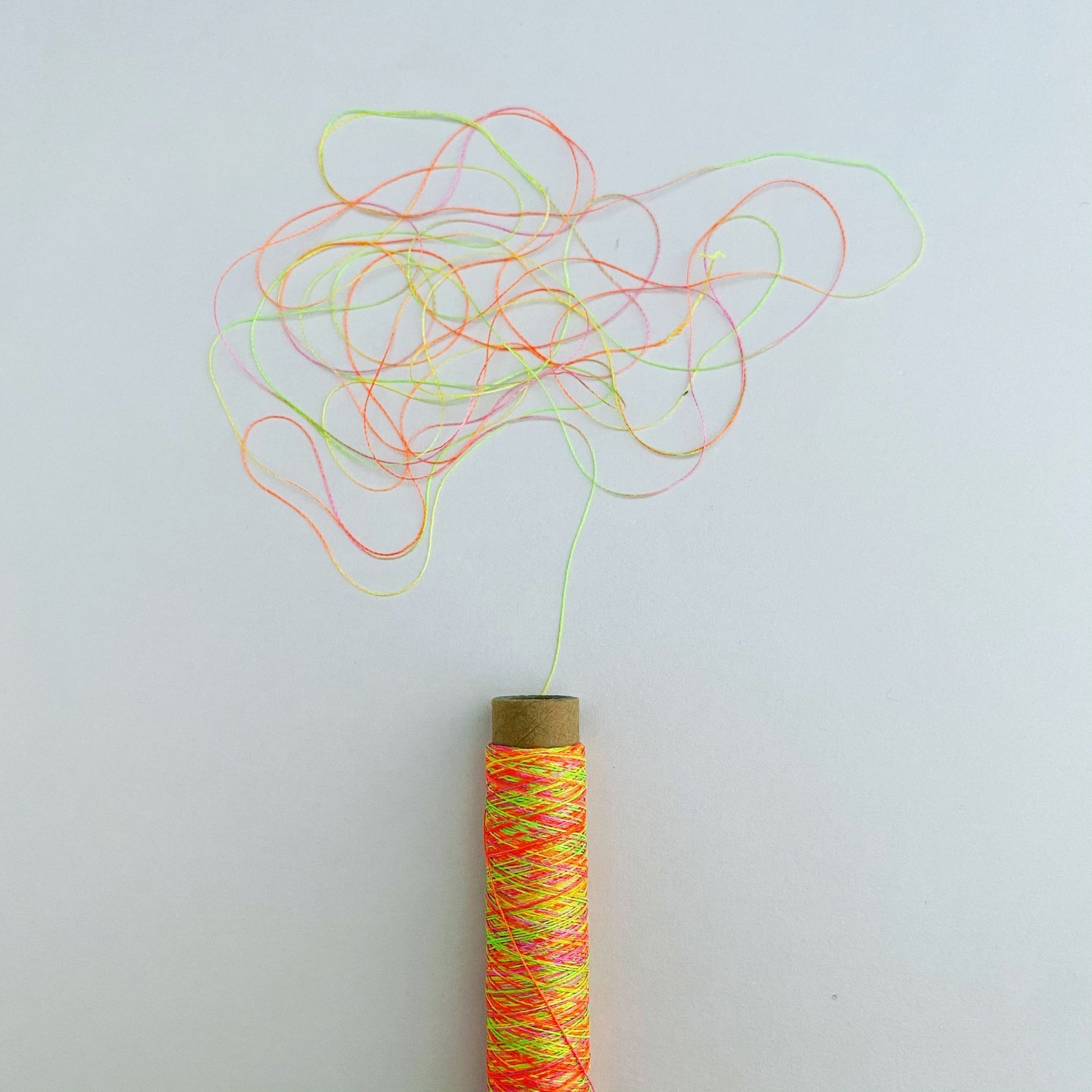 目にも鮮やかな蛍光色が何色も現れる刺繍糸です。