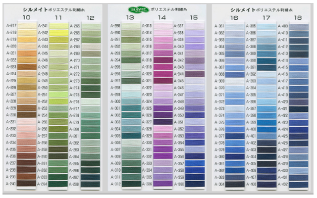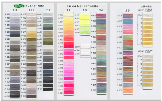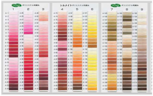 ポリエステル100%の高品質刺繍糸「シルメイト」全色を掲載した見本帳です。