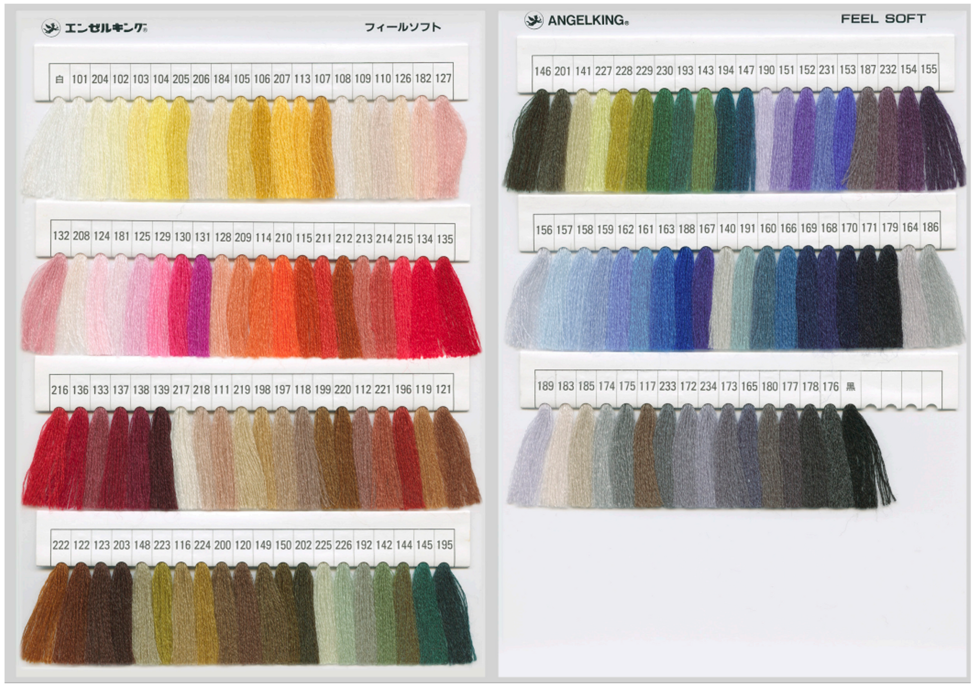 アクリルウールのミシン刺繍糸 フィールソフト の見本帳です。
