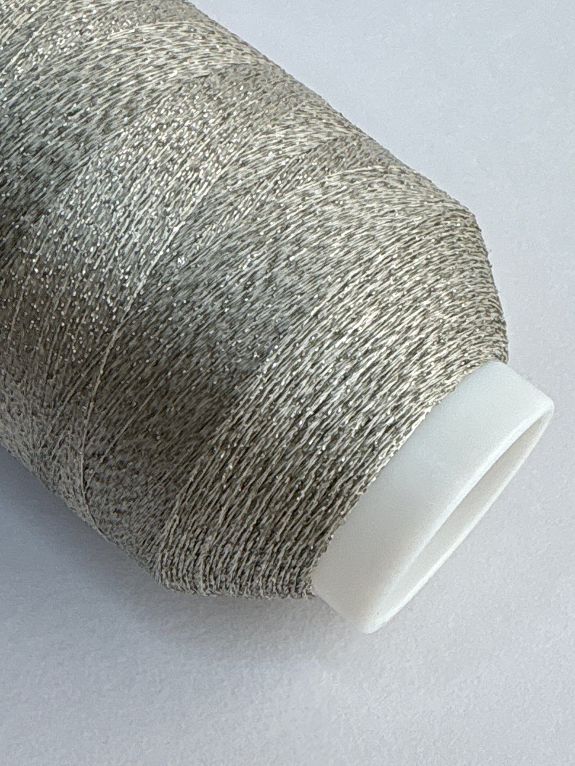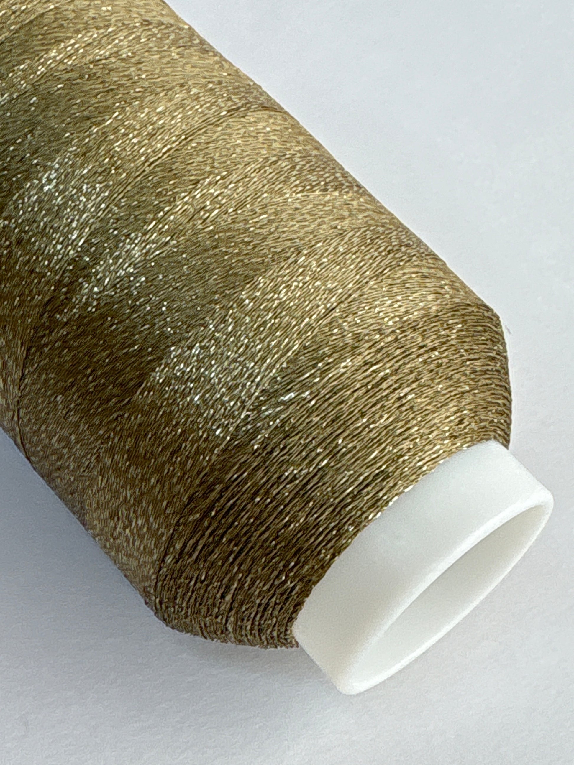A skin-friendly metallic embroidery thread safe for use in innerwear, babywear, and more.