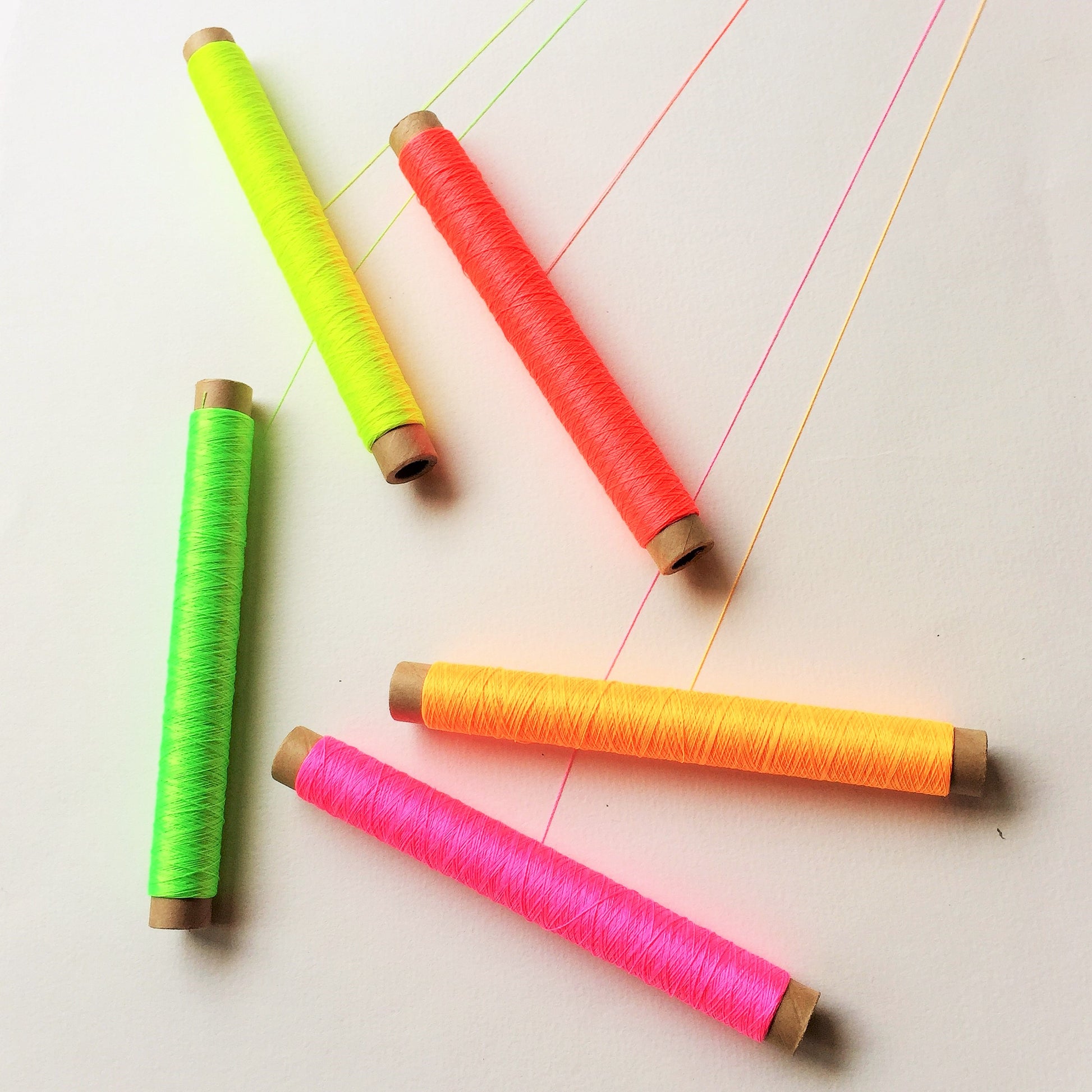 目を引く蛍光色のポリエステル刺繍糸を、使いやすい少量巻でセットにしました。