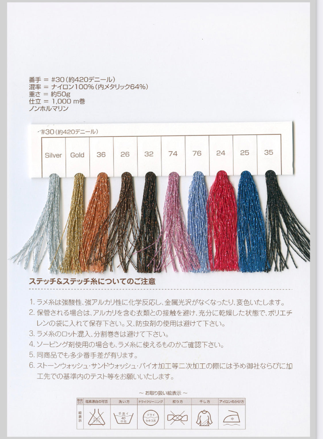 ステッチ&ステッチ8番手(太)・30番手(縫製・ステッチ縫いにおすすめラメ糸)