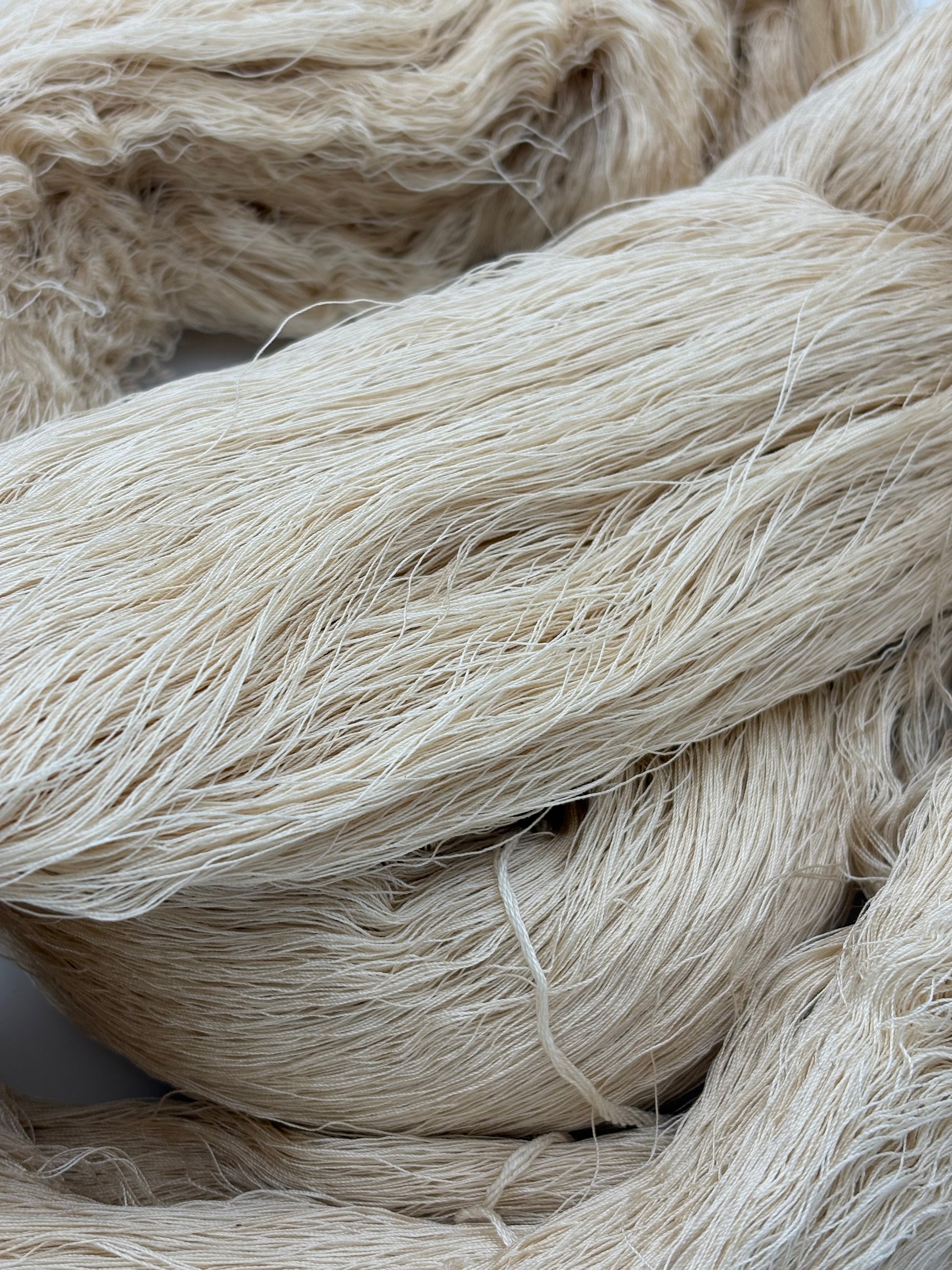 上質なスーピマコットンを使用した、染色前の綛糸です。
